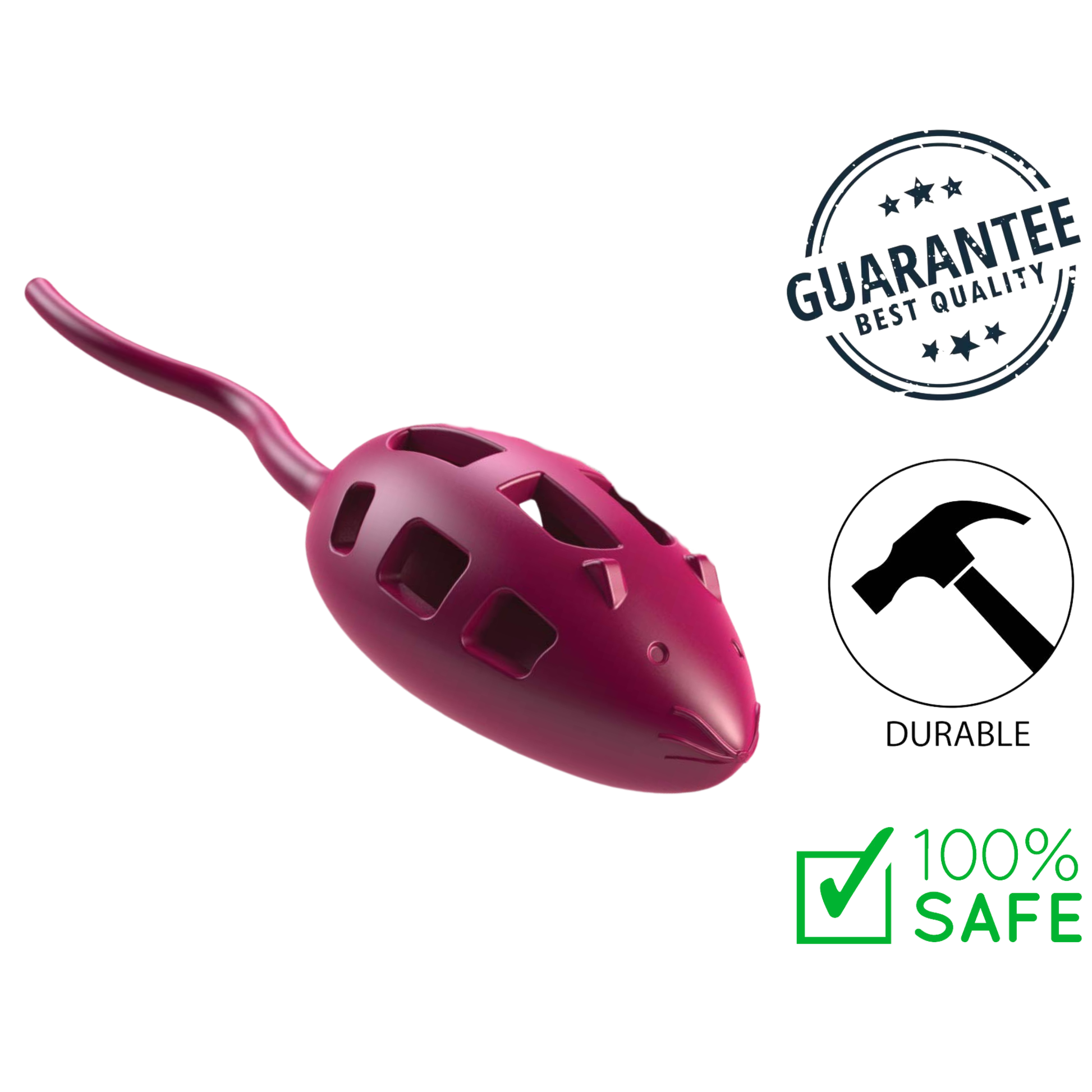 The Aikiou Mouse Cat Toy is an interactive, enrichment toy designed to encourage your cat’s natural hunting instincts. Made from food-safe TPR rubber that’s free from BPA and BHT, it features openings where you can hide treats or dry food inside. Your cat can paw, bat, roll and hunt it out—helping promote mental stimulation, play and activity.