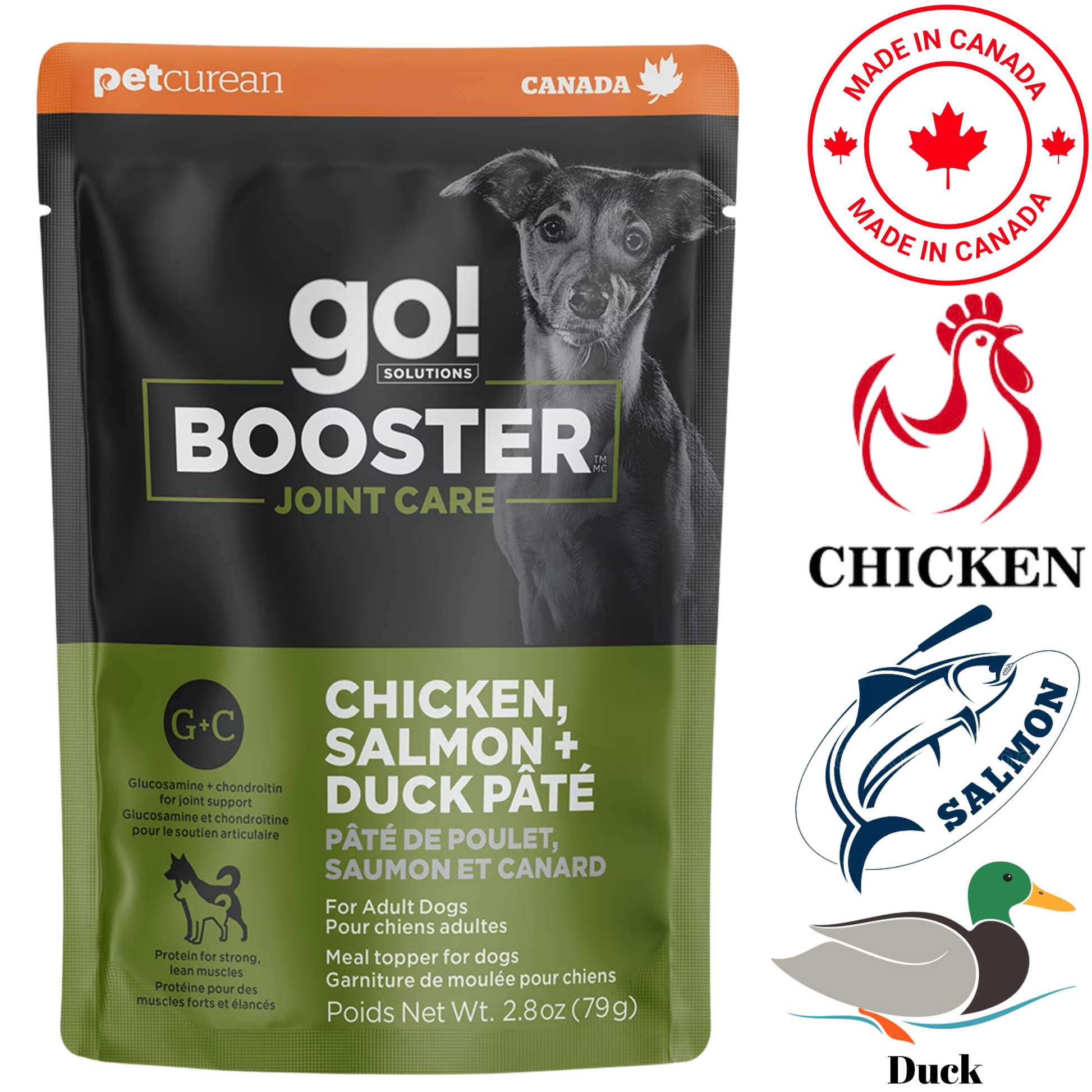 Go! Solutions - Booster Joint Care Chicken, Salmon + Duck Pate Wet Dog Food Topper - 2.8 Oz