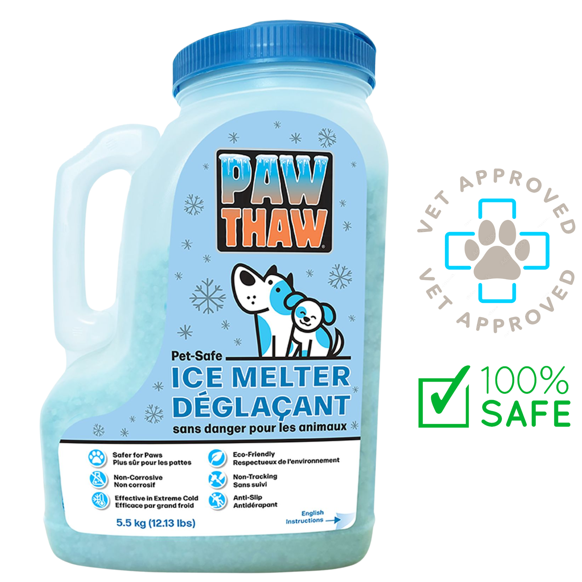 Pestell Paw Thaw Ice Melter for Dogs is a pet-safe ice-melt product formulated to help clear icy, slippery walkways while minimizing irritation to your dog’s paws. Unlike many typical ice melts, this formula is designed to be gentler on pet skin and soft paw pads — ideal for Canadian winters when snow and ice accumulate outside.