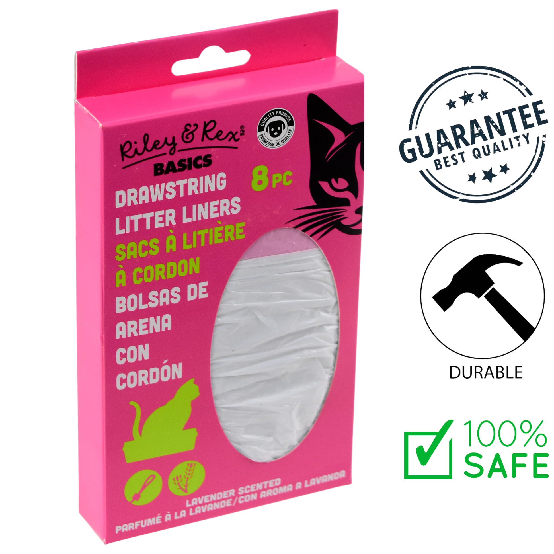 Riley & Rex Drawstring Litter Box Lavender Scent Liners provide a convenient and hygienic way to maintain your cat’s litter box. These durable liners are infused with a light lavender scent that helps control odours, keeping your home smelling fresh. Designed with a secure drawstring closure, they make cleanup quick, mess-free, and efficient. Each pack includes eight liners that fit most standard litter boxes, offering pet owners an easy and reliable solution for everyday use.