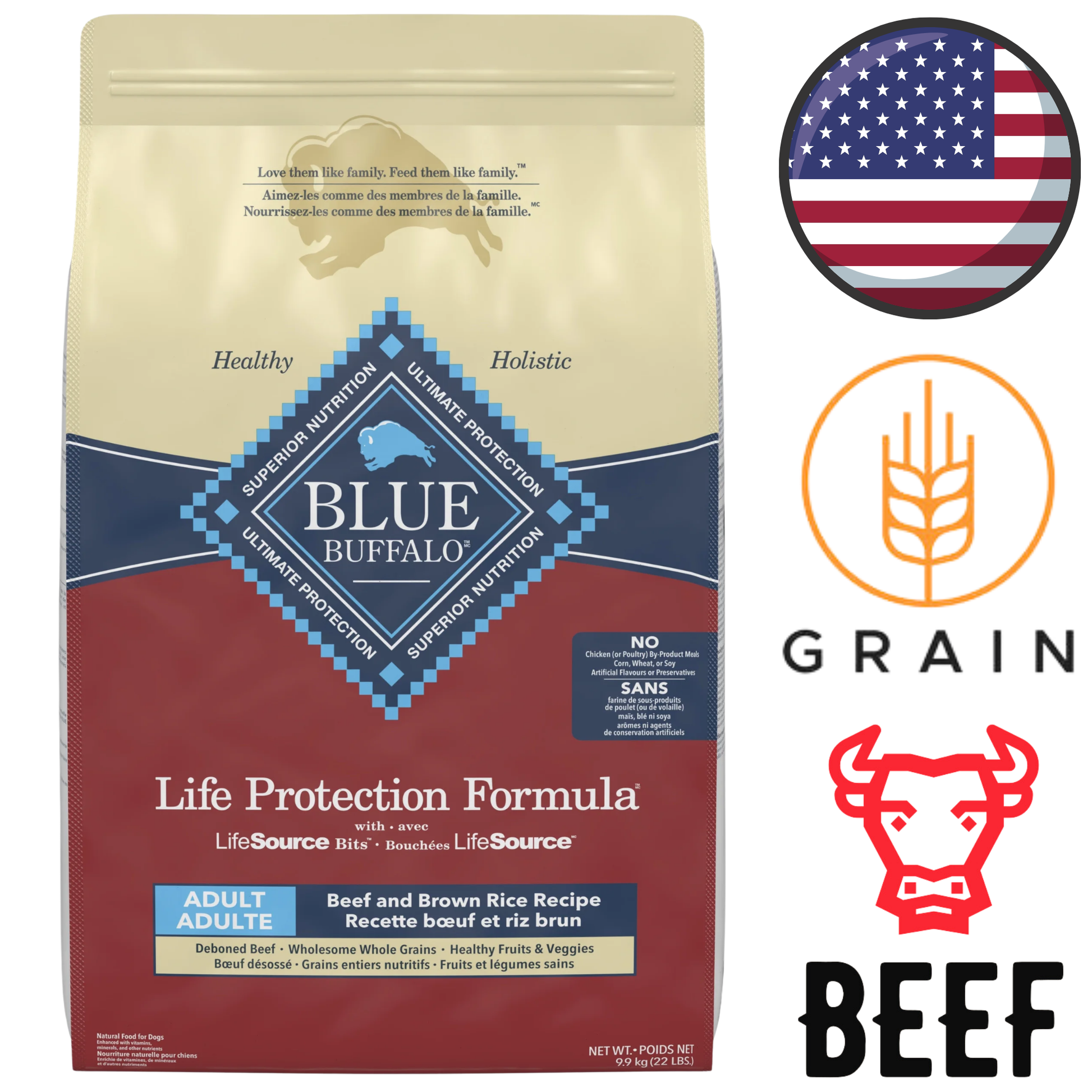 Blue Buffalo Life Protection Beef Adult Dry Dog Food is a complete dry diet made with real beef as the first ingredient to support lean muscle maintenance and everyday energy. This formula combines wholesome whole grains, garden vegetables, and fruit with LifeSource Bits, a precise blend of antioxidants, vitamins, and minerals selected by veterinarians and animal nutritionists, to help support immune health, digestion, and overall well-being in adult dogs.