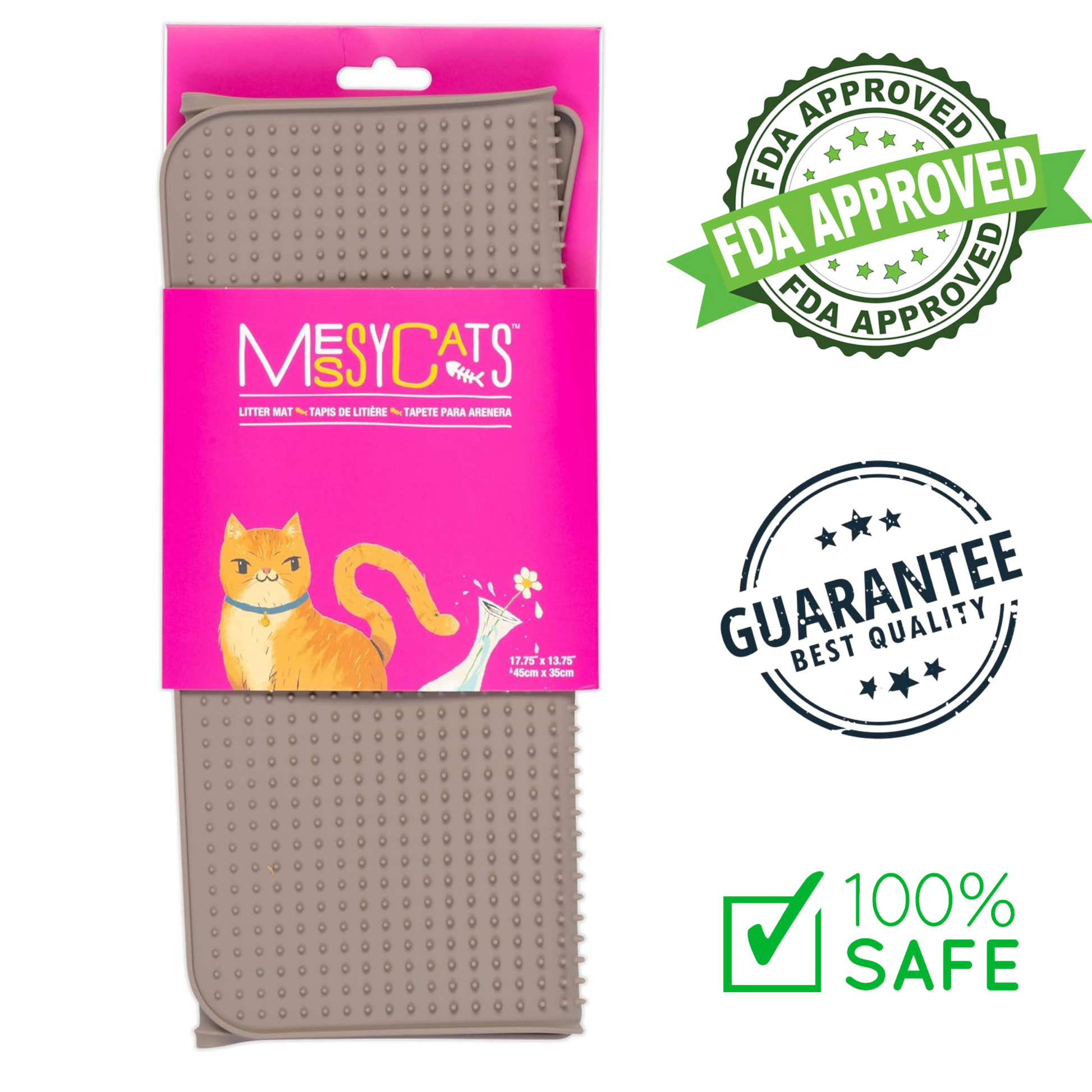 Messy Cats 紫色硅胶猫砂垫为您的猫砂区增添一抹亮色。垫子采用渐变尖刺设计,可有效阻挡散落的猫砂,保护您的地板。柔软的硅胶设计呵护猫咪的脚,且易于维护。