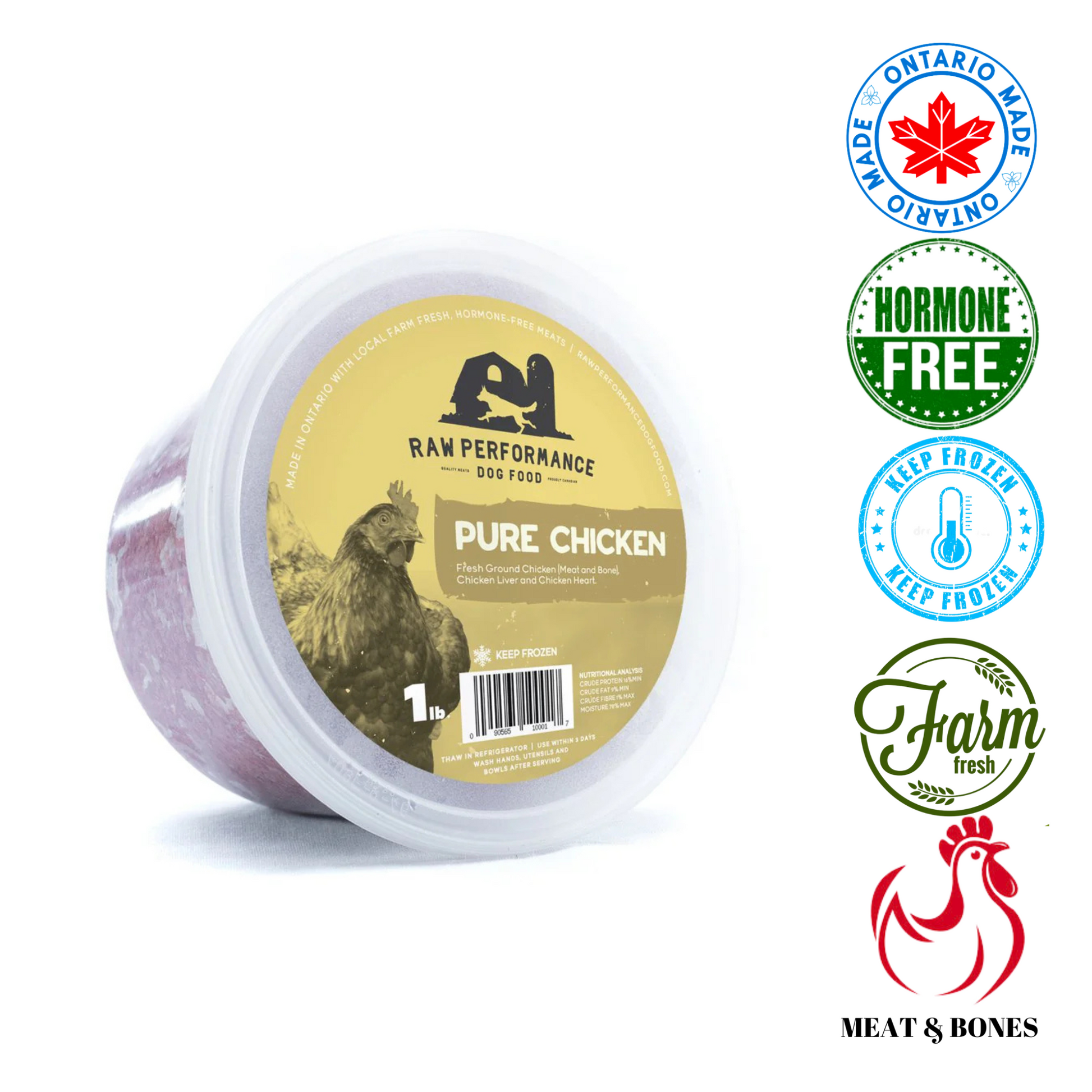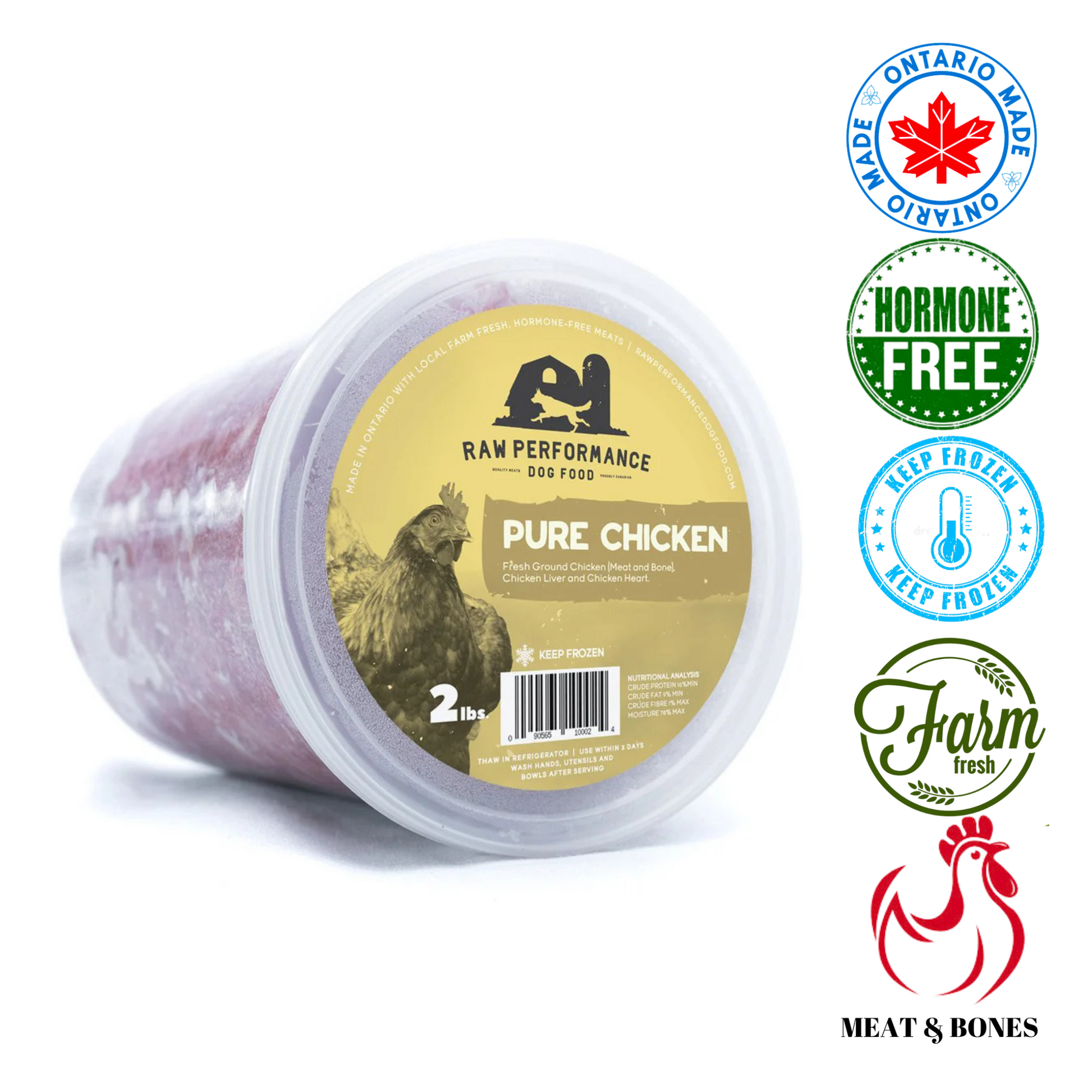 使用 Raw Performance 纯鸡肉狗粮,支持您爱犬的日常健康。这款全脂单蛋白生食配方采用加拿大饲养的鸡肉、内脏和碎骨制成。这款易消化的配方非常适合幼犬、成年犬和老年犬,提供瘦肉蛋白、钙和必需维生素,促进肌肉发育、关节功能和毛发光泽。